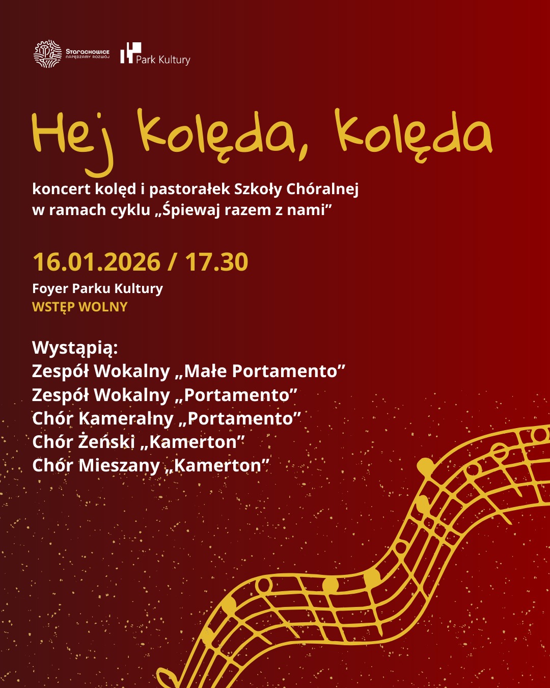 Park Kultury w Starachowicach zaprasza wszystkich miłośników muzyki na koncert kolęd i pastorałek Szkoły Chóralnej w ramach cyklu „Śpiewaj razem z nami".