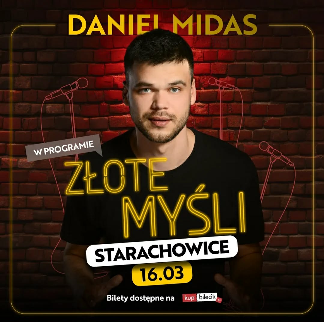 Zapraszamy na najnowszy stand-up Daniela Midasa ZŁOTE MYŚLI, już 16 marca o godzinie 19:00 w Parku Kultury w Starachowicach!