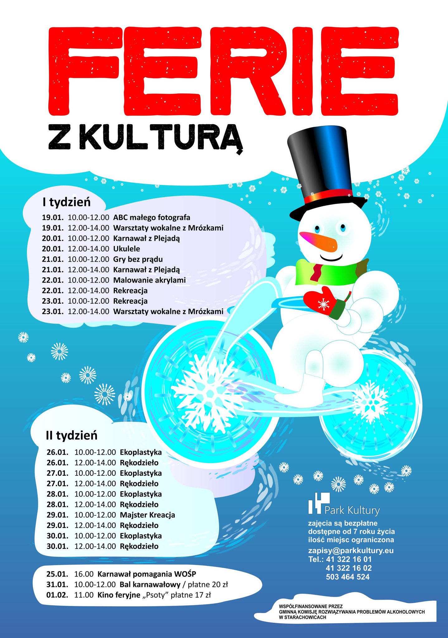 Bogata oferta ferii zimowych to również efekt finansowego wsparcia Gminnej Komisji Rozwiązywania Problemów Alkoholowych, która od lat wspiera inicjatywy na rzecz aktywnego i bezpiecznego spędzania wolnego czasu przez dzieci i młodzież.