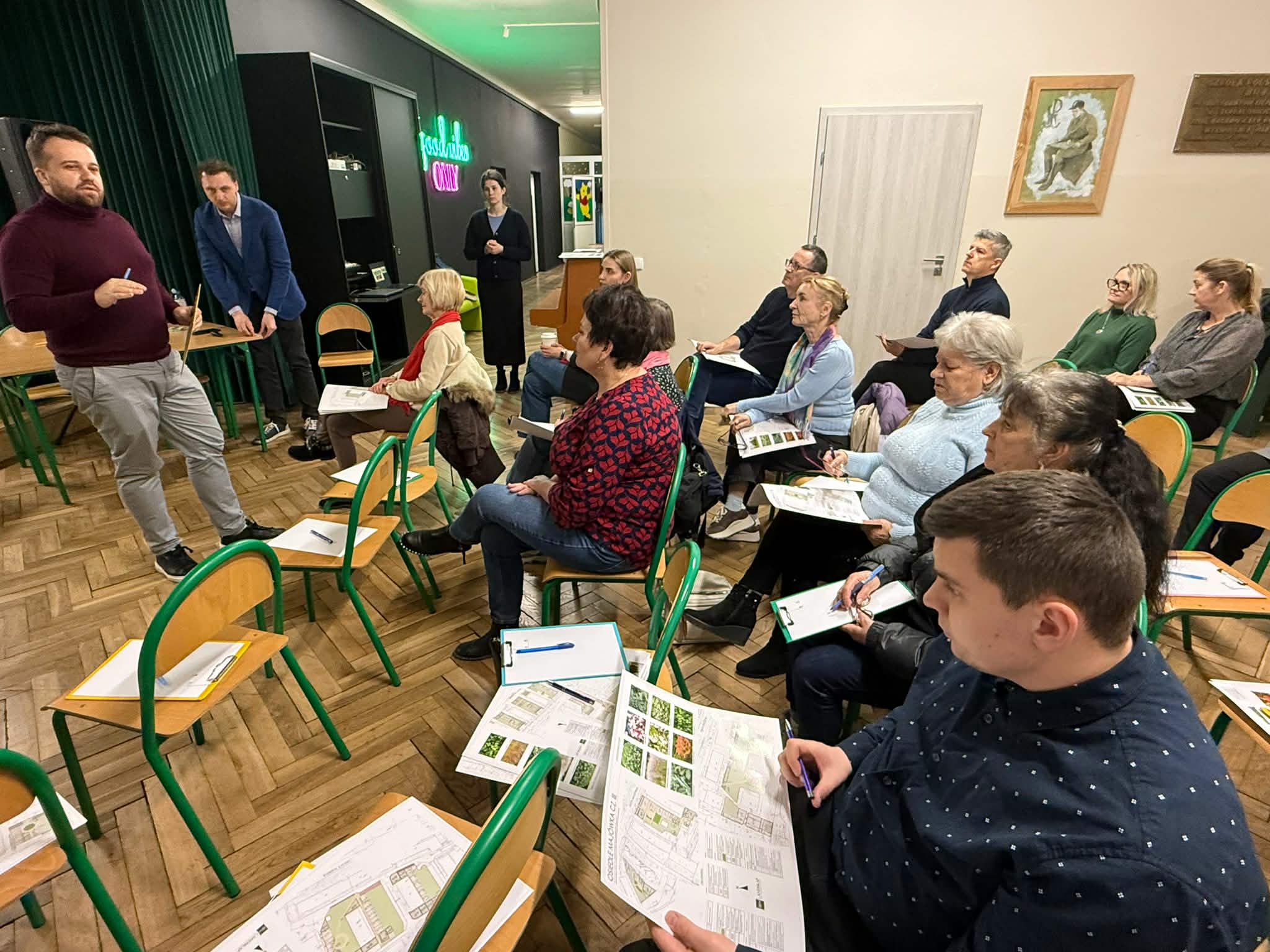 Przedstawiciele Urzędu Miejskiego wspólnie z architektami zaprezentowali dokumentację projektowo-kosztorysową z zakresu zagospodarowania zieleni na osiedlu Majówka. W spotkaniu udział wzięli również mieszkańcy, którzy zgłosili swoje uwagi do zaprezentowanych rozwiązań.